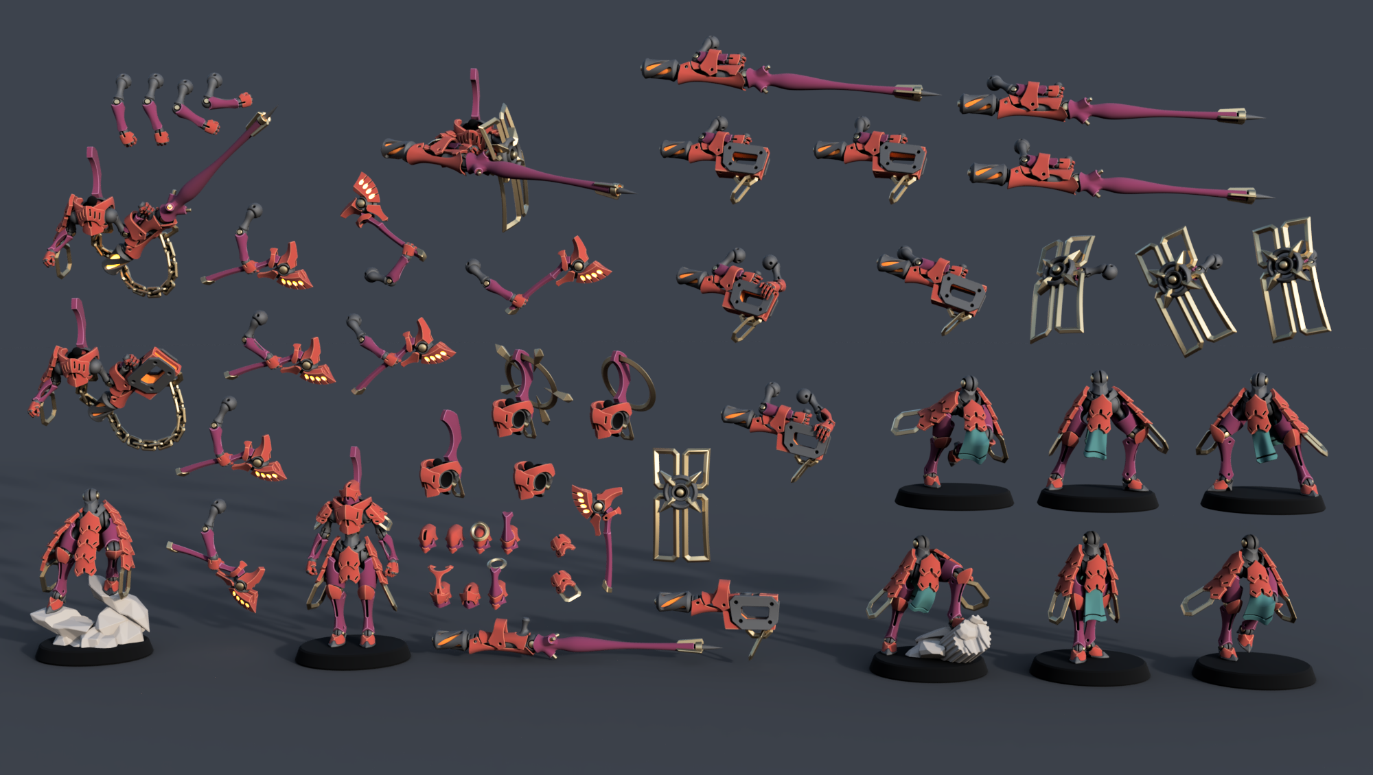 Multipart modular Construct kit. Designed for a massive degree of customizeability with interchangeable parts across the faction. Perfect for mix-and-match builds and scaling conversions. With a plethora of assembly options and pieces. These Frames can be put together with a ton of variance~